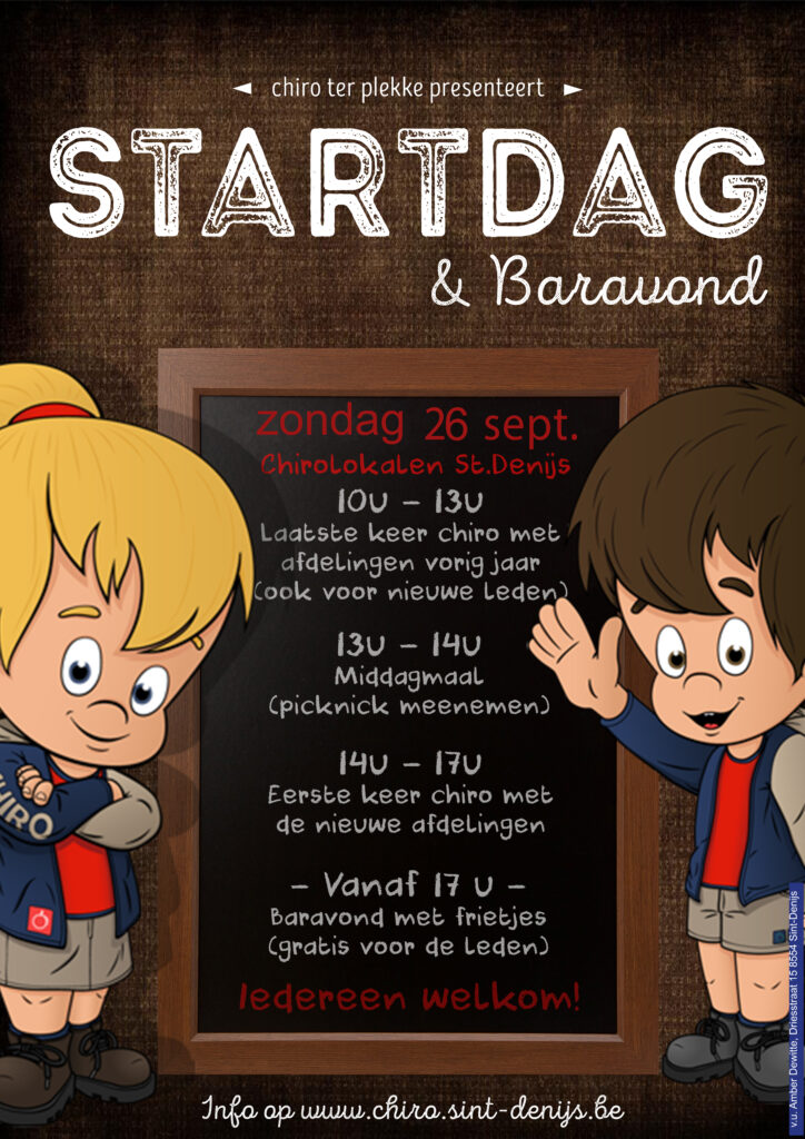 Zin om elke zondag te komen ravotten in de chiro van Sint-Denijs? Dan wensen wij iedereen vanaf het eerste leerjaar tot het zesde middelbaar van harte welkom op onze startdag om eens te komen proeven van Chiro Ter Plekke!